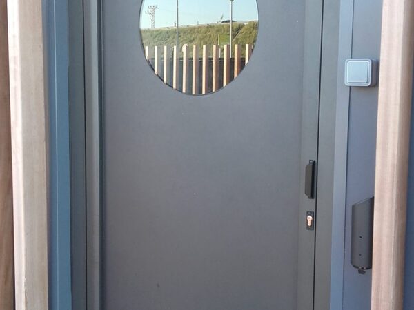 Carpinterías de aluminio lacado con cristales de control solar por las fachadas del edificio. Cuarterones de aluminio, vidrios tipo listral, taquilla para pedidos en vehículo, etc. Estructuras de acero para soporte de fachada de lamas de madera, puertas correderas de acero para acceso al recinto, etc.